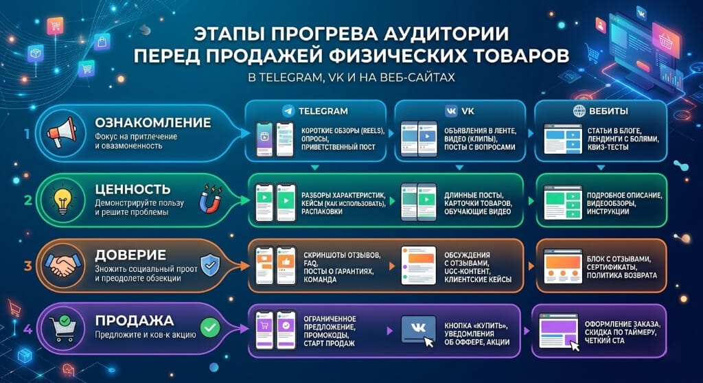 Психология принятия решения о покупке физического товара состоит из трех этапов: осознание ценности, «примерка» предмета на себя и эмоциональный импульс. Без предварительного прогрева покупатель видит только сухие характеристики и цену. Прогрев же включает воображение, создавая ощущение обладания вещью еще до момента сделки. В интерактивном формате (аукционном методе) это критически важно: прогретая аудитория борется за товар активнее, что ведет к рекордному росту цены.